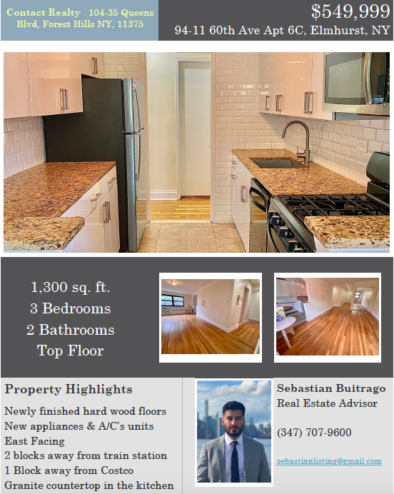 JUST RENOVATED ! Located in elmhurst, in between two train stops( Woodhaven train station & 63rd street ), steps from both Queens Center Mall and Rego Central Mall , 2 blocks away from Costco